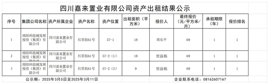 四川嘉來(lái)置業(yè)有限公司資產(chǎn)出租結(jié)果公示