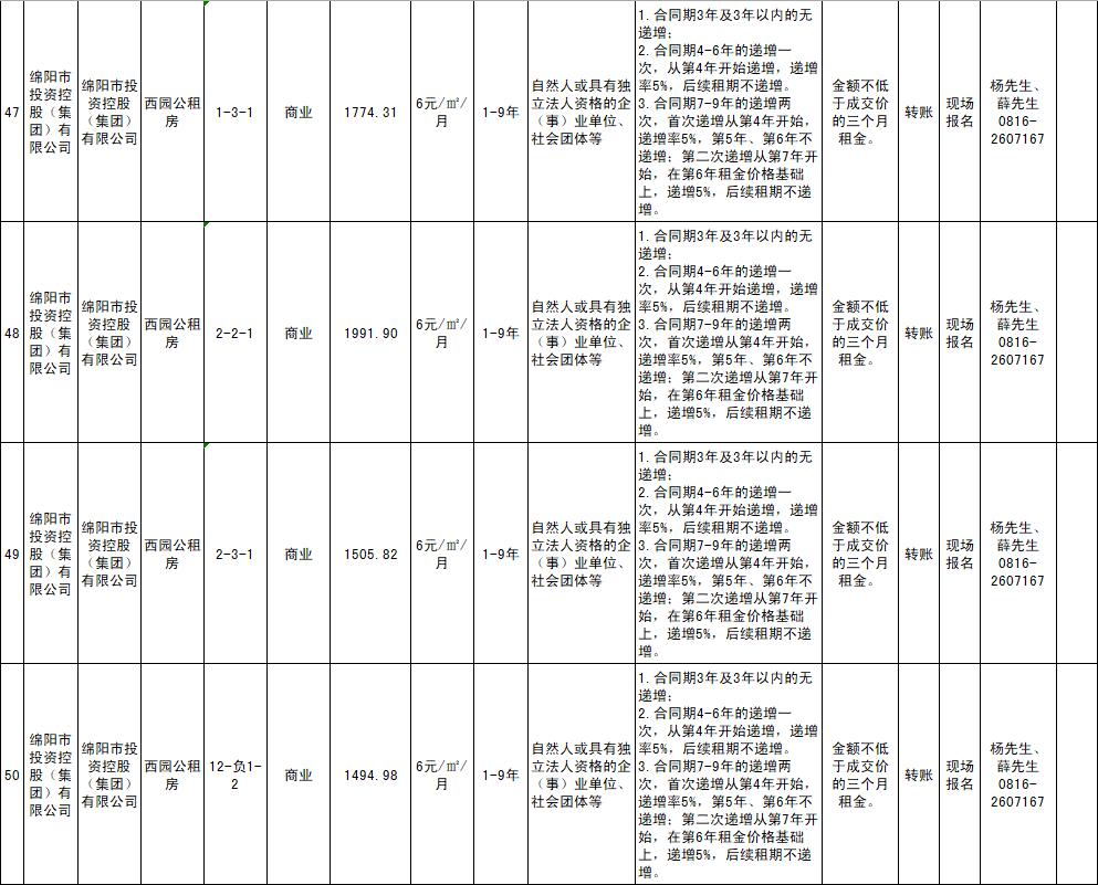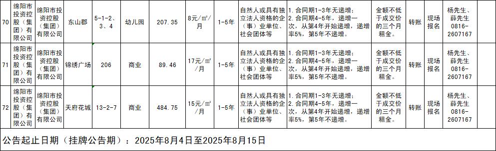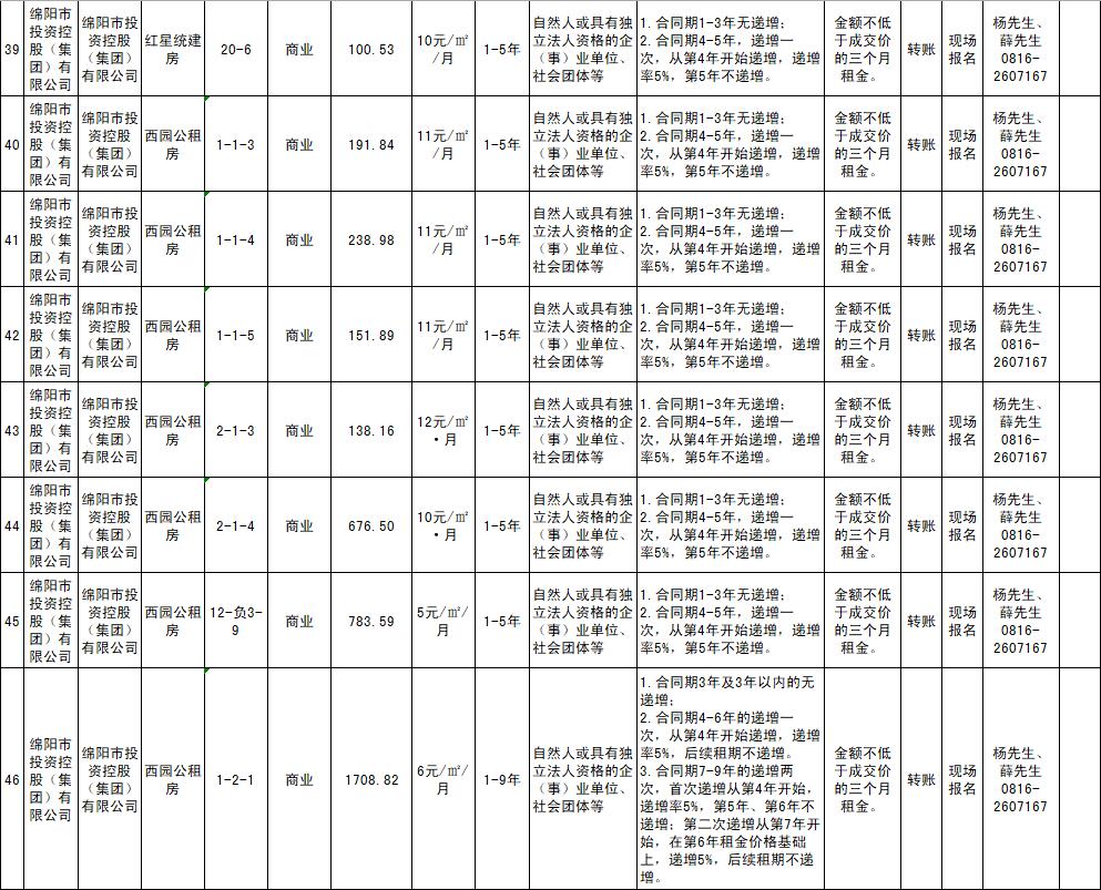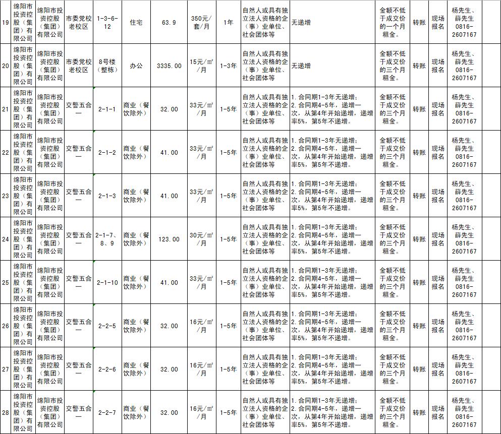 綿陽市綿投商業(yè)運(yùn)營管理有限責(zé)任公司資產(chǎn)出租公告
